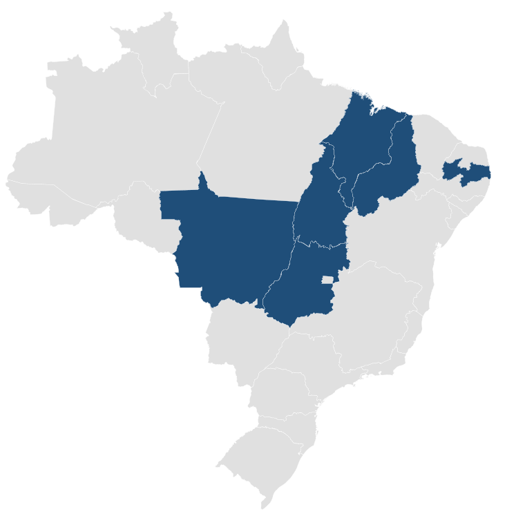 Maior inserção nos estados de Goiás, Tocantins, Paraíba, Mato Grosso, Piauí e Maranhão,